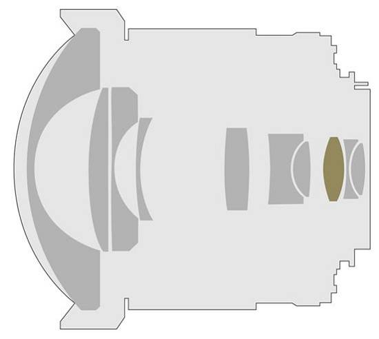 Samyang 8mm f/3.5 Aspherical IF MC Fish-eye to najwyższej jakości obiektyw szerokokątny. Obiektyw przeznaczony jest do aparatów z matrycą APS-C. Nowa wersja, ze zdejmowaną osłoną przeciwsłoneczną, z powodzeniem pracuje z aparatami pełnoklatkowymi. Trzeba jednak liczyć się z koniecznością przekadrowania w czasie obróbki w celu usunięcia części objętej winietą. Dzięki zastosowaniu w jego konstrukcji hybrydowej soczewki asferycznej oraz wielowarstwowych powłok antyrefleksyjnych najnowszej generacji, parametry optyczne utrzymane są na najwyższym poziomie. Obiektyw oferuje pole widzenia 180 stopni dla aparatów APS-C, dzięki temu fotografie wykonane z jego pomocą zyskują zupełnie nowy wymiar. Na rysunku obok przedstawiono uklad optyczny obiektywu. Kolorem zielonym wyróżniono soczewkę asferyczną.