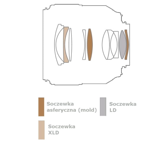 Na konstrukcję optyczną Tamrona SP 35 mm f/1.8 Di VC USD składa się 10 soczewek ustawionych w 9 grupach. Producent nie żałował specjalnych elementów. Mamy więc aż dwie soczewki asferyczne wykonane w technologii glass-mold, jedną soczewkę ze szkła niskodyspersyjnego LD (Low Dispersion) i jedną XLD (eXtraLow Dispersion). Wewnątrz znajdziemy jeszcze kołową przysłonę o dziewięciu listkach.