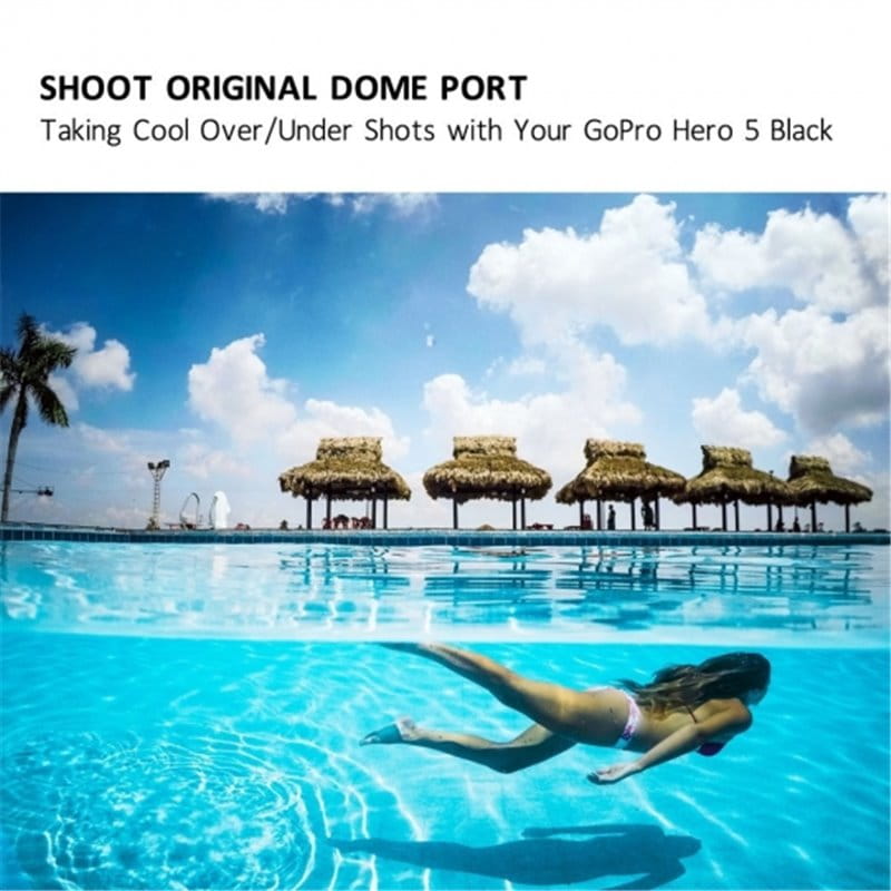 Obudowa podwodna DOME do kamer GoPro HERO 5, 6, 7 black. Pozwala na wykonywanie niesamowitych ujęć w połowie pod wodą i w połowie nad wodą w tym samym czasie. Obudowa DOME jest gotowa do użycia z kamerą po wyjęciu z pudełka. Wykonana jest z materiałów najwyższej jakości. Możesz cieszyć się z wykonywania fantastycznych zdjęć i nagrywania filmów z poziomem wody. Aby zamocować kamerę w obudowie należy zdemontować obiektyw.