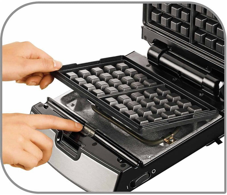 Bez problemu zdemontujesz i wymienisz płyty. Gdy urządzenie ostygnie, wystarczy wcisnąć przycisk znajdujący się wewnątrz opiekacza i wyjąć płytę. To rozwiązanie pozwoli Ci używać opiekacza na wiele sposobów.