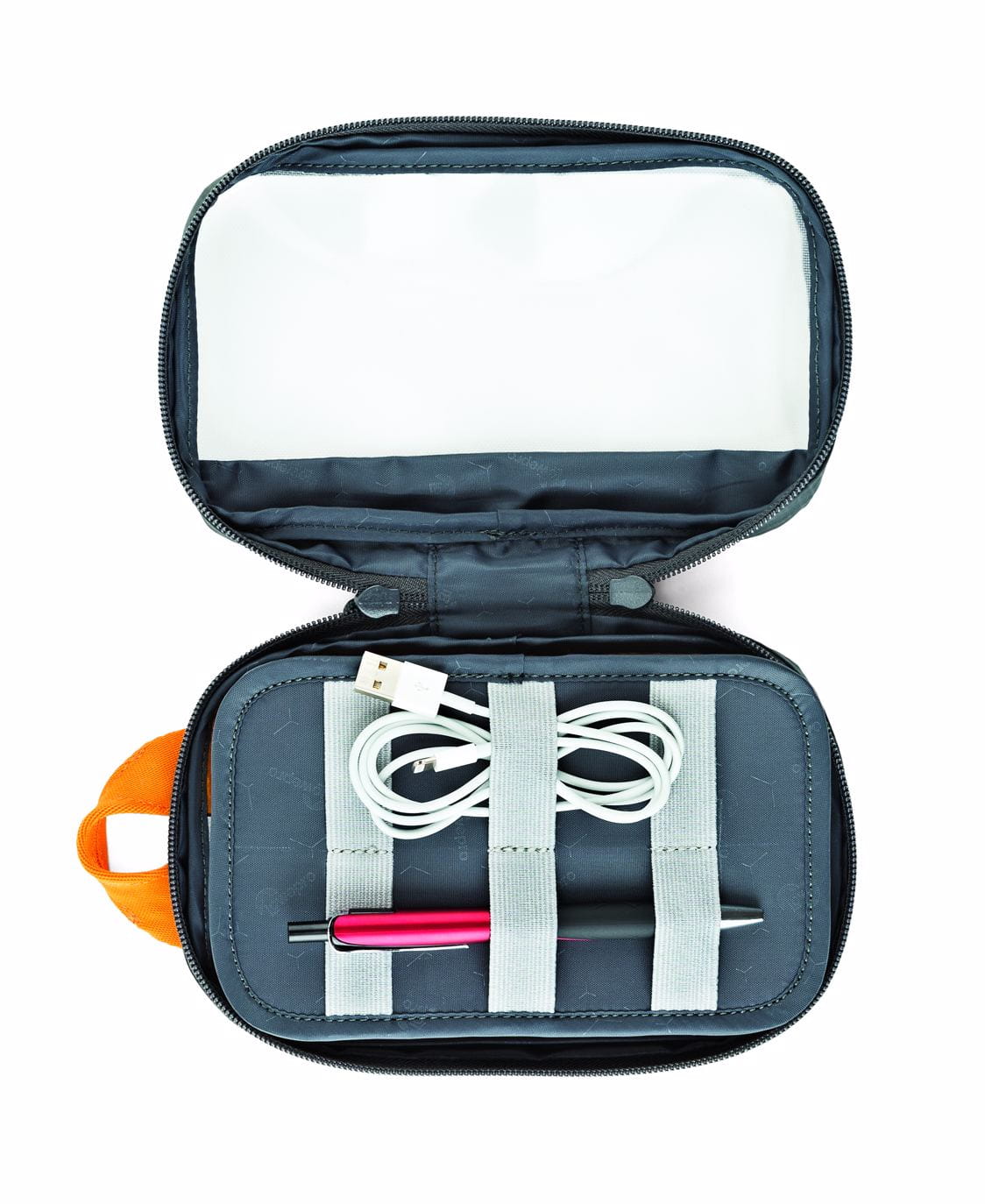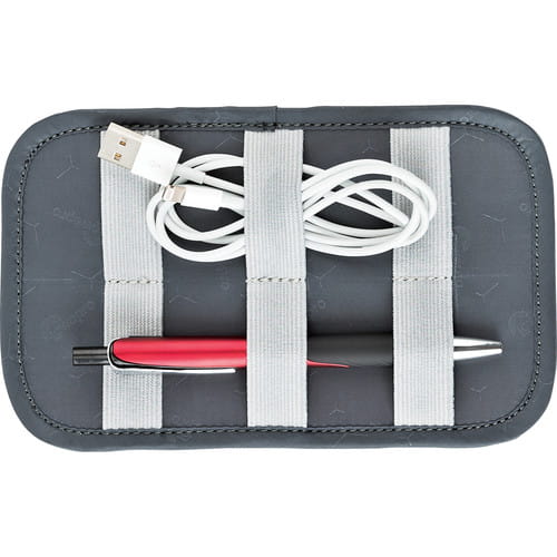 | Cechy produktu | Kable telefoniczne, kable, przejściówki, baterie, ładowarki, pamięci USB Zdejmowany 2-stronny panel Organizer z elastycznymi pasami mocującymi Elastyczny pasek do trzymania z listwą na podłodze w etui Podwójny suwak z zamkiem 360 ° pozwala na łatwe ładowa |