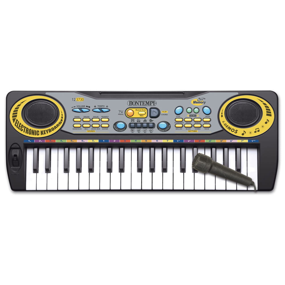 Keyboard elektroniczny, 37 przycisków midi (C-C), 8 dźwięków, 8 rytmów, 5 utworów ustawionych na każdy przycisk, 4 dźwięki perkusji, 4 wariacje rytmiczne, 4 efekty dźwiękowe, funkcja nagrywania i odtwarzania, rytm. us Program