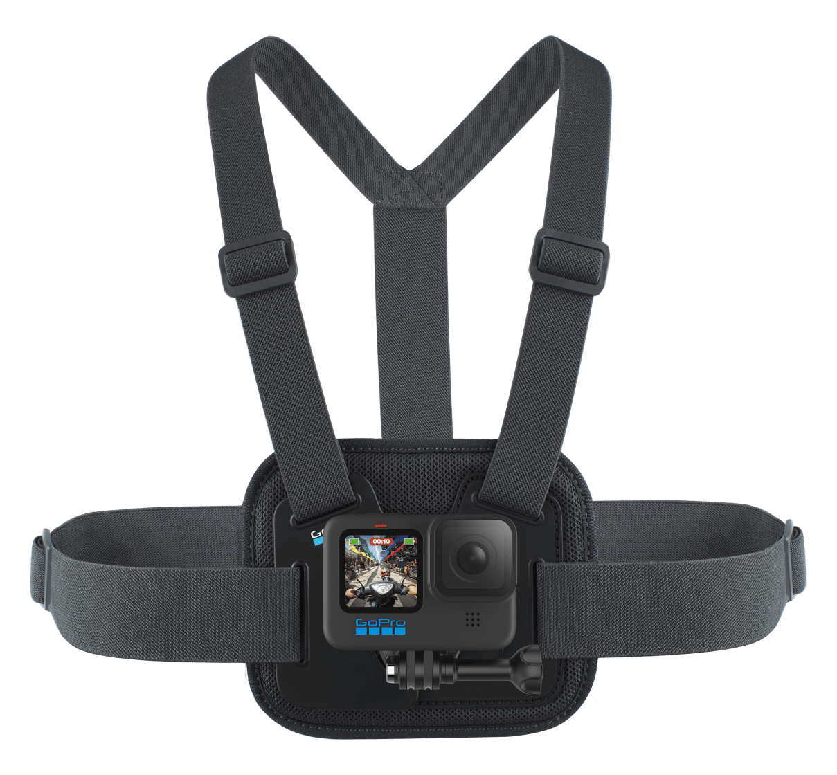 Chesty to w pełni regulowane szelki do mocowania kamery na klatce piersiowej. Idealne do nagrywania jazdy na nartach, motocyklu lub rowerze, sportów kajakarskich i wielu innych. Dzięki umieszczeniu GoPro na Chest Mount zyskujesz nową, bardzo ciekawą perspektywę.