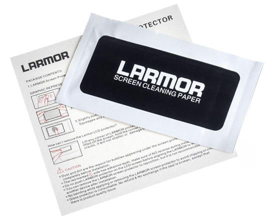 Larmor 4G to najnowsza seria osłon na ekrany LCD firmy GGS. Szklana, sześciowarstwowa osłona wykonana jest z japońskiego hartowanego szkła optycznego. Chroni ekran LCD aparatu przed uszkodzeniami, zarysowaniami, uderzeniami oraz zabrudzeniem. Zapewnia niespotykaną widoczność ekranu, dzięki zastosowaniu szkła o wysokiej transmisji światła oraz kilku powłok (antyrefleksyjnych, UV, wzmacniających, przeciwkurzowych). Pod względem wytrzymałości oraz jakości obrazu znacznie przewyższa folie oraz osłony wykonane z plastiku.