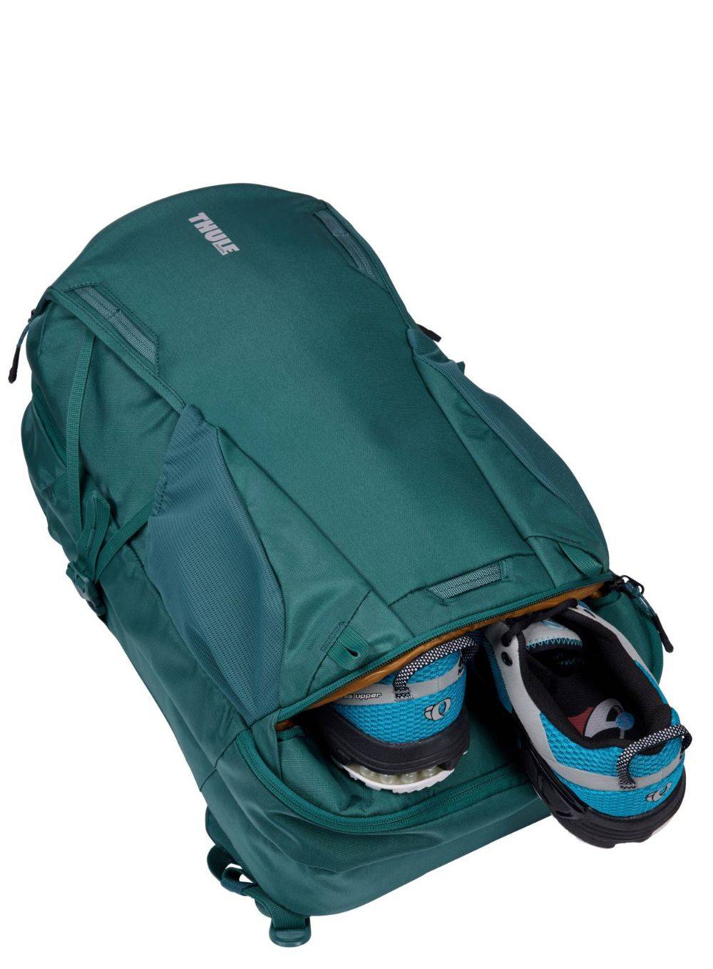 Thule EnRoute 30 to plecak turystyczny, miejski, który ma dwie pojemne komory. Jedna posiada wyściełane przegrody na laptopa 15,6" i tablet 10,5", a także mniejsze kieszenie na akcesoria i brelok do kluczy. Druga komora otwiera się jak walizka i ma dużo miejsca na przedmioty rekreacyjne. Bardzo pojemna kieszeń z siatki zapinana na zamek, mniejsza otwarta kieszeń z siatki i wodoodporna, matowa kieszeń na zamek błyskawiczny wykonana z materiału TPU zapewniają porządek i łatwą organizację. Na zewnątrz sztywna i ochronna kieszeń SafeZone na telefon, okulary przeciwsłoneczne i inne cenne przedmioty oraz oddzielna kieszeń zapinana na zamek biegnąca przez dno na brudne ubrania i buty. Dodatkowo po bokach plecak ma rozciągliwe kieszenie z siatki np. na butelkę z wodą i parasol.