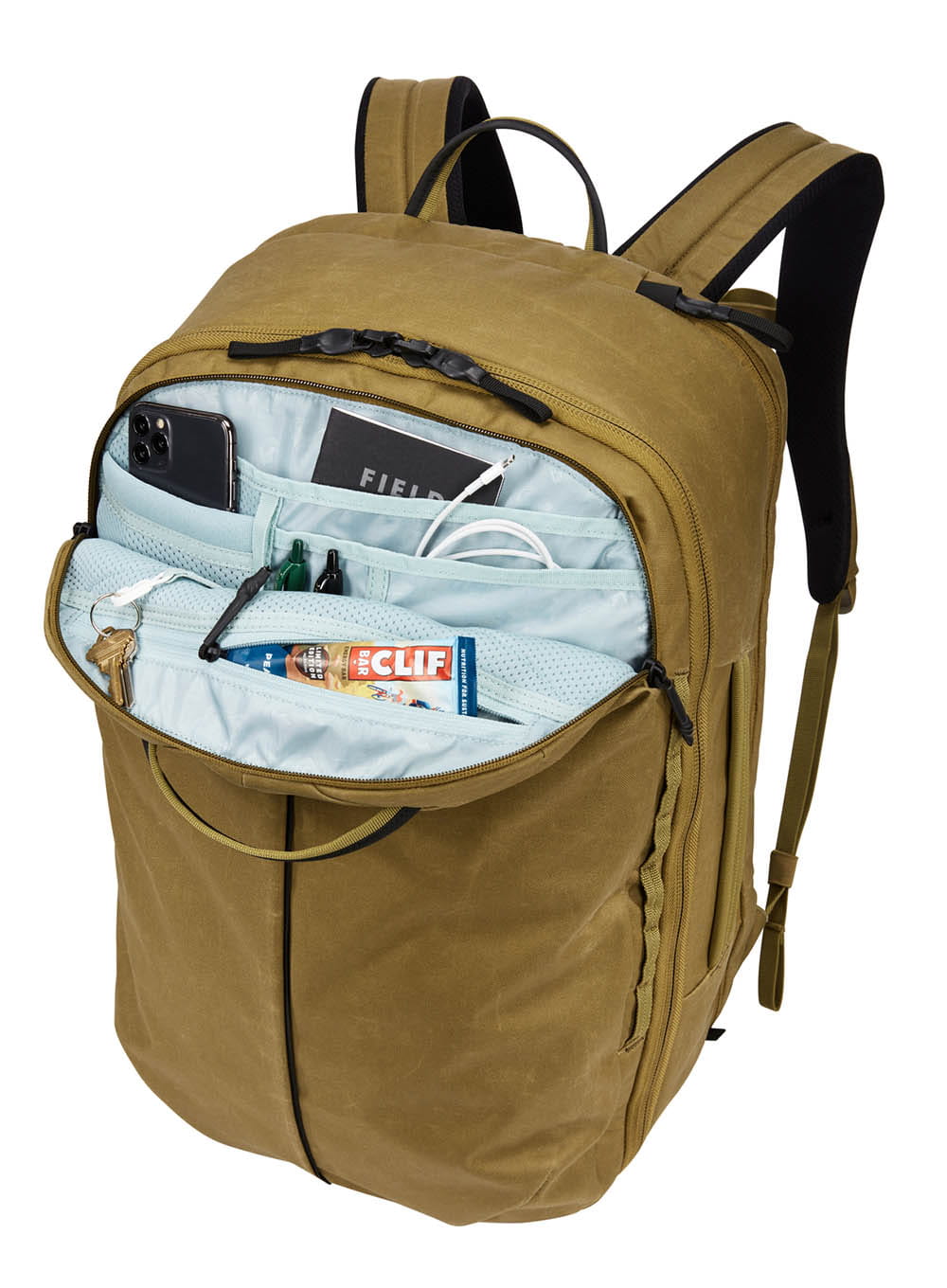 Plecak podręczny Thule Aion 40 ma wydzielone miejsca do przechowywania elektroniki i kieszeń na butelkę z wodą. Saszetka biodrowa Thule Aion Sling (sprzedawana oddzielnie) może być używany razem z tym plecakiem podróżnym jako pas biodrowy, zapewniający dodatkowe wsparcie i szybki dostęp do niezbędnych przedmiotów.