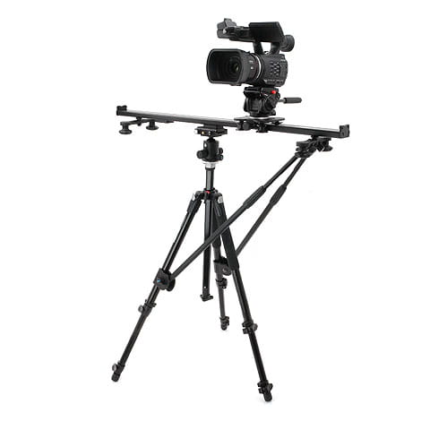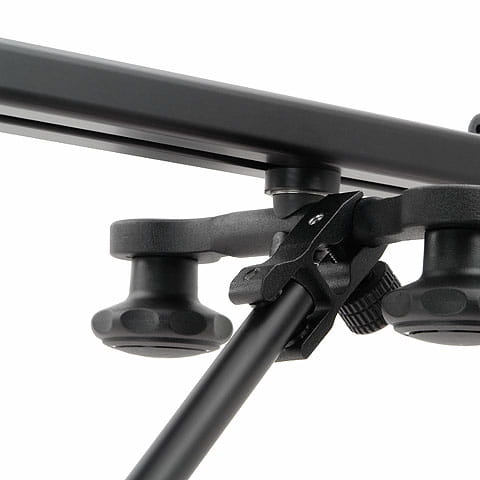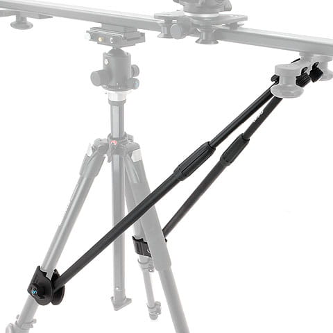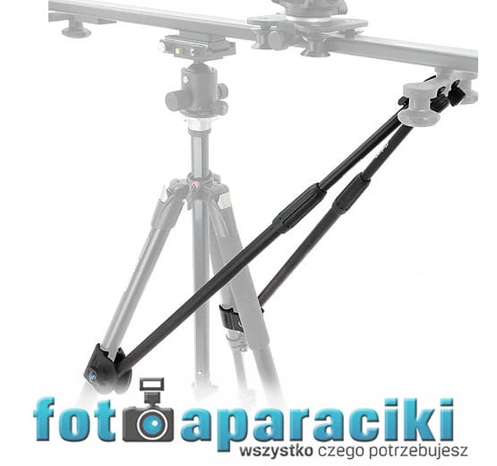 Podpory instaluje się na przeciwległych nogach statywu za pomocą regulowanych uchwytów. Po drugiej stronie mocujemy je do nóg slidera za pomocą zacisków typu „klik”. Na środku podpór znajdują się pokrętła zaciskowe, które umożliwiają błyskawiczną regulację długości, pozwalając na ustawianie slidera pod różnym kątem.