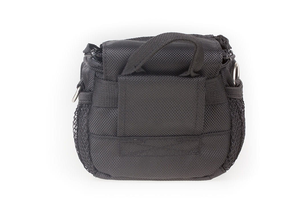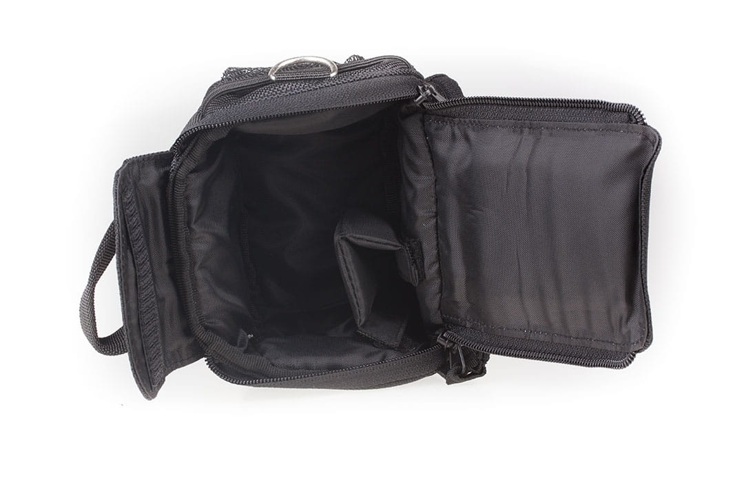 Zapinana na zamek kieszonka na karty pamięci i akumulatorki, a wewnątrz przymocowana na rzep ścianka. Komora główna zapinana jest na zamki błyskawiczne oraz dodatkowo na rzep. Kolor czarny