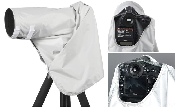 Pokrowiec wysposażony jest w 'okienko' umożliwiające podgląd ekranu LCD i odsługę przycisków, otwór na muszlę oczną wraz z 3 adapterami do Canona i Nikona. W zestawie znajduje się także woreczek ochronny na pokrowiec.