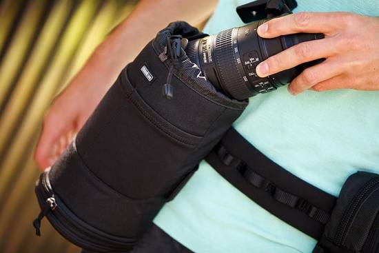 na obiektywy zoom. Pokrowiec zapewnia szybki dostęp do obiektywów zoom typu 70-200/2,8 z założoną osłoną przeciwsłoneczną.