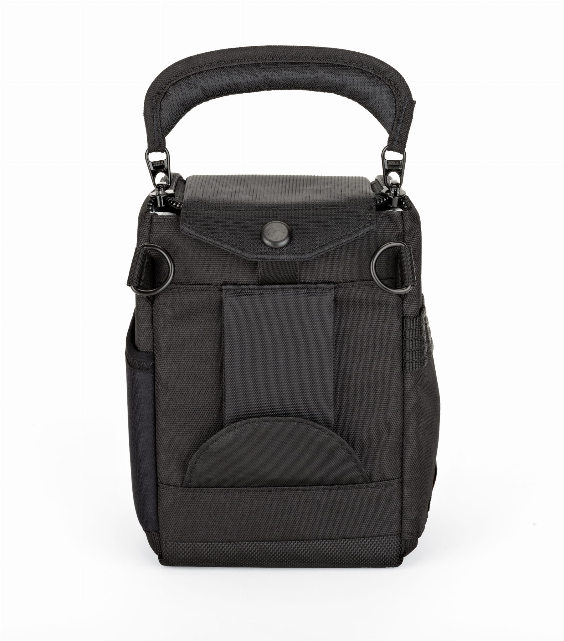 Może pełnić funkcję dodatkowego pokrowca na obiektyw lub body, który jest dopięty do innego plecaka, torby lub pasa.