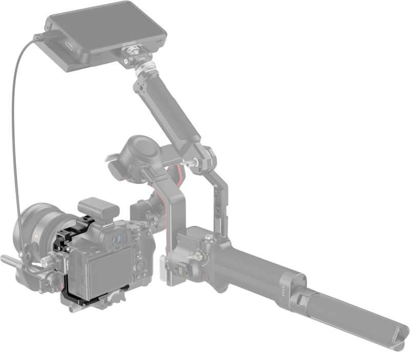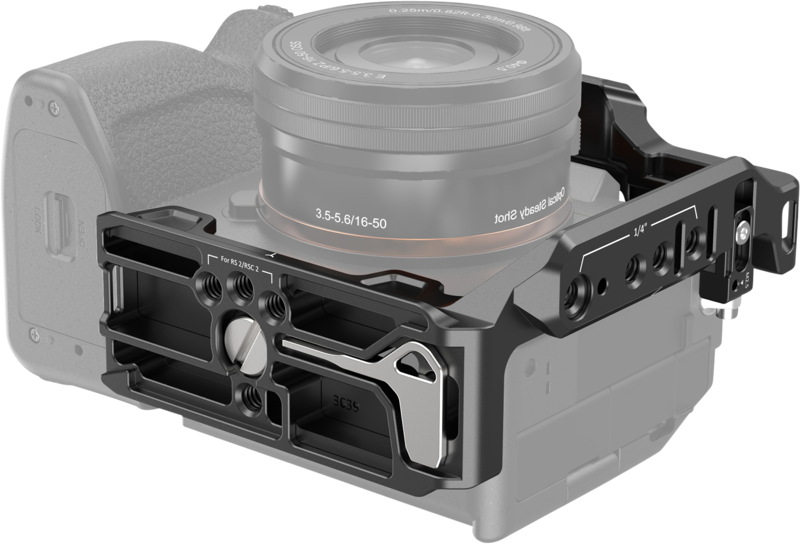 Wbudowane dookoła przekładki ochronne chronią aparat przed zarysowaniem. Gwintowane otwory 1/4"-20, otwory ARRI 3/8"-16 i zimne stopki wspierają górny uchwyt 2165, uchwyt boczny 2093, uchwyt monitora 2903, mikrofony, światła LED, itp. Płytka szybkozłączki Arca na dole jest kompatybilna z DJI RS 2/RSC 2 i płytką szybkozłączki stabilizatorów DJI RS 2/RSC 2 do fotografowania z użyciem stabilizatorów.