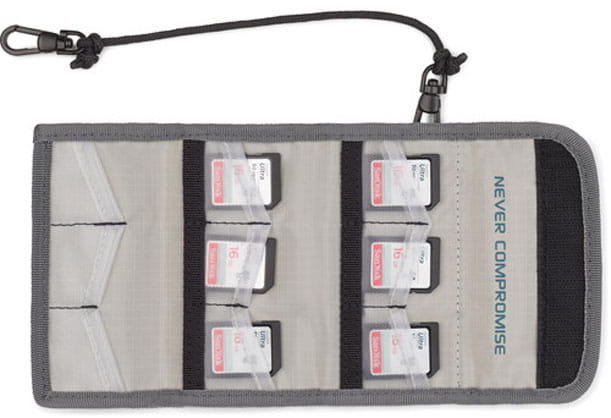 Portfel na karty TENBA Reload SD 9 pozwala na przenoszenie i przechowywanie do 9 kart SD lub micro SD z adapterem. Portfel posiada pętlę na rzep dzięki czemu można go przymocować do pasa, paska na ramię lub do szelek plecaka. Unikalne ukośne kieszenie ułatwiają szybkie wyjmowanie kart, a dołączony kabel zabezpieczający pozwala przymocować portfel do torby lub statywu. Przezroczysta tylna kieszonka jest idealna do przechowywania wizytówek.