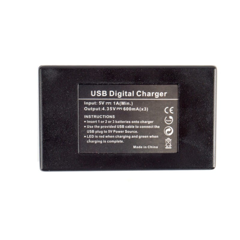 Potrójna ładowarka procesorowa do akumulatorów AHDBT-501. Ładowarka jest kompaktowa, dzięki czemu jest również wygodna w transporcie. W komplecie znajduje się kabel pozwalający na ładowanie baterii poprzez USB w komputerze.