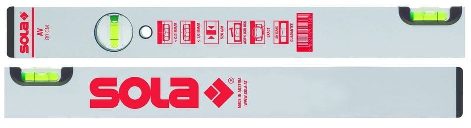 Profesjonalna poziomica z serii AV długości 80 cm austriackiej firmy Sola – jednego z najlepszych światowych producentów narzędzi pomiarowych. Jest to bardzo dokładne narzędzie spełniające oczekiwania wymagających użytkowników.
