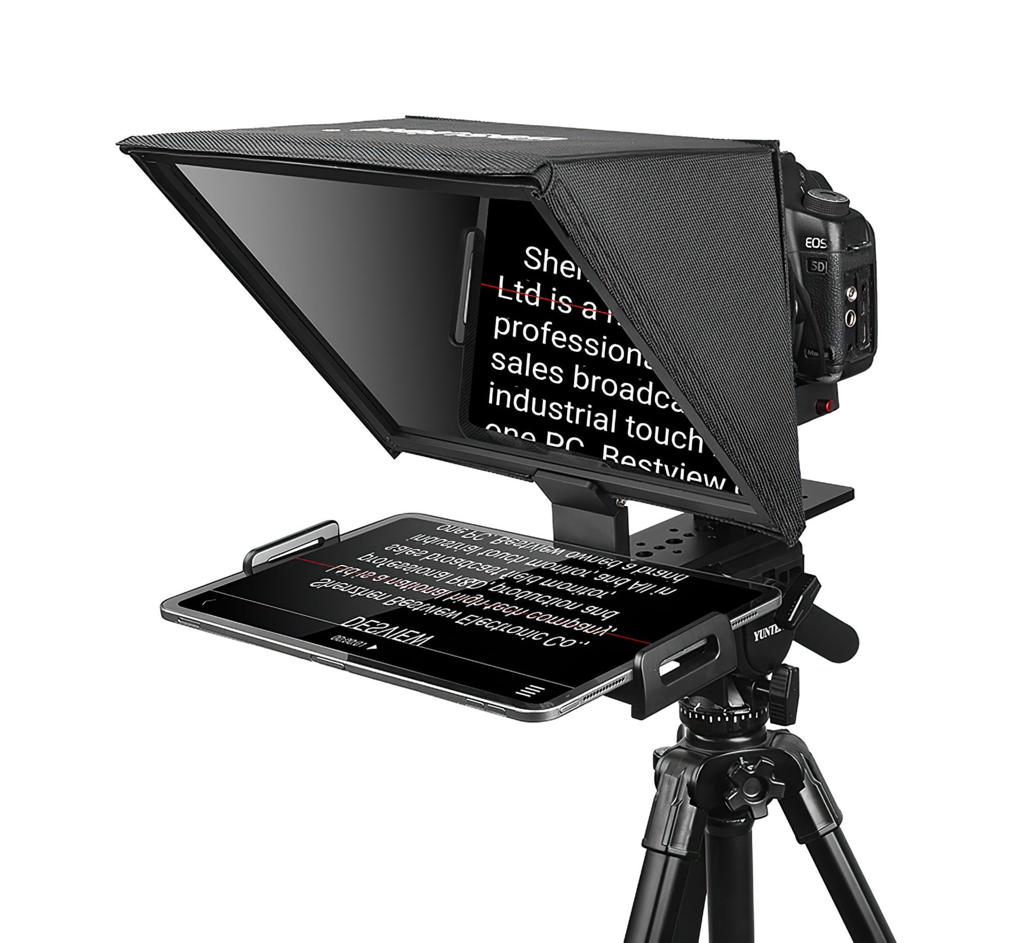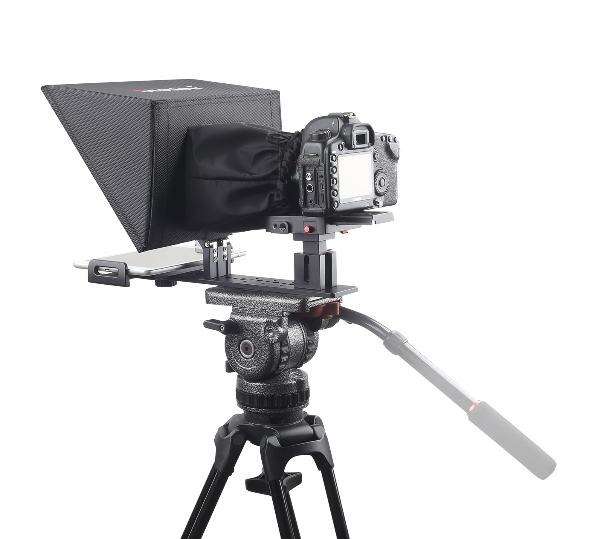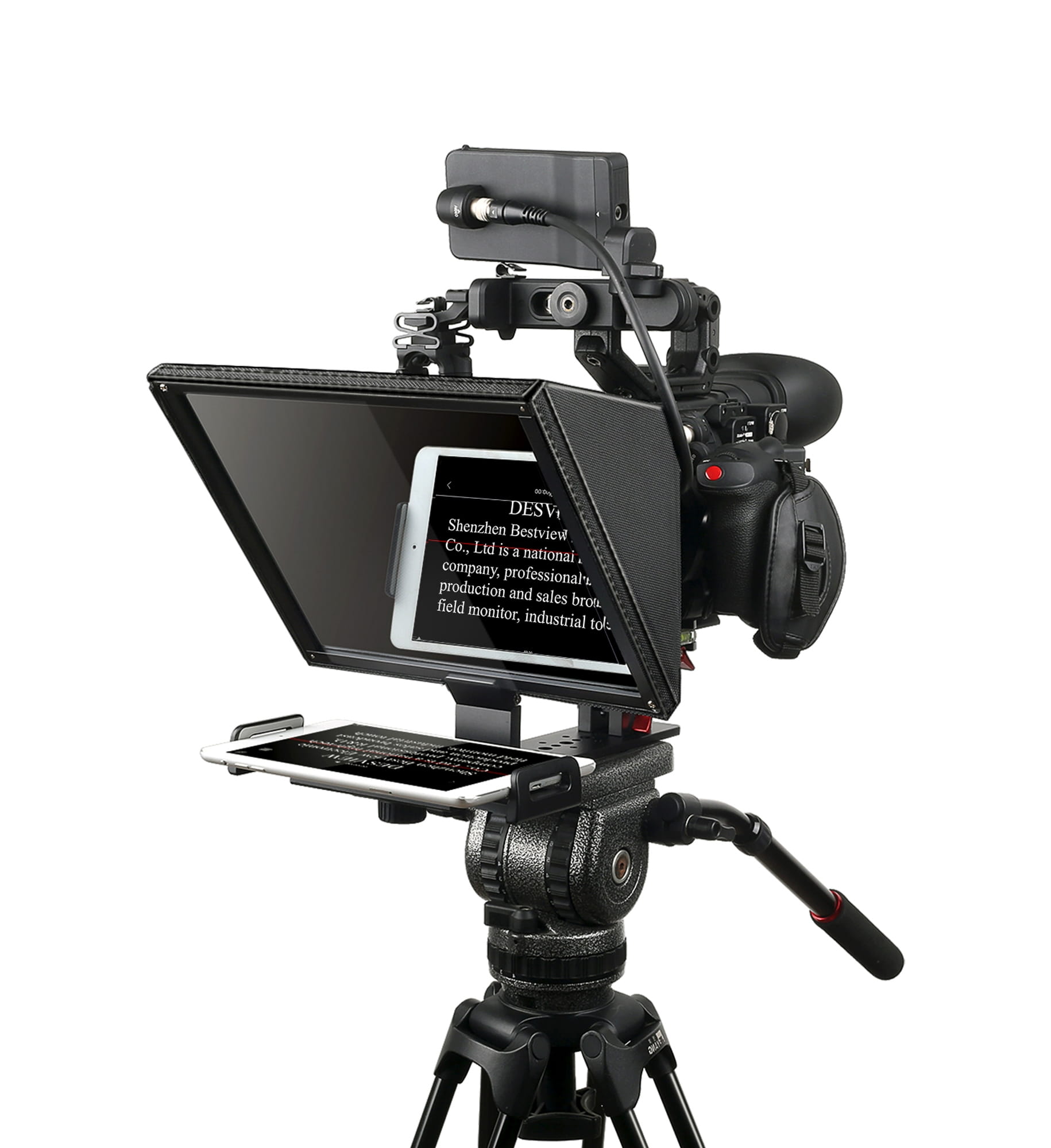 Teleprompter Desview T12 to urządzenie, które pozwoli Ci zaoszczędzić setki godzin spędzanych na niekończącym się powtarzaniu ujęć do vlogów, webminarów lub innych filmów wymagających lektora. Oferuje on profesjonalny uchwyt, który wygodnie zainstalujesz na statywie, a następnie połączysz z tabletem lub smartfonem o maksymalnej przekątnej wynoszącej 11”.
