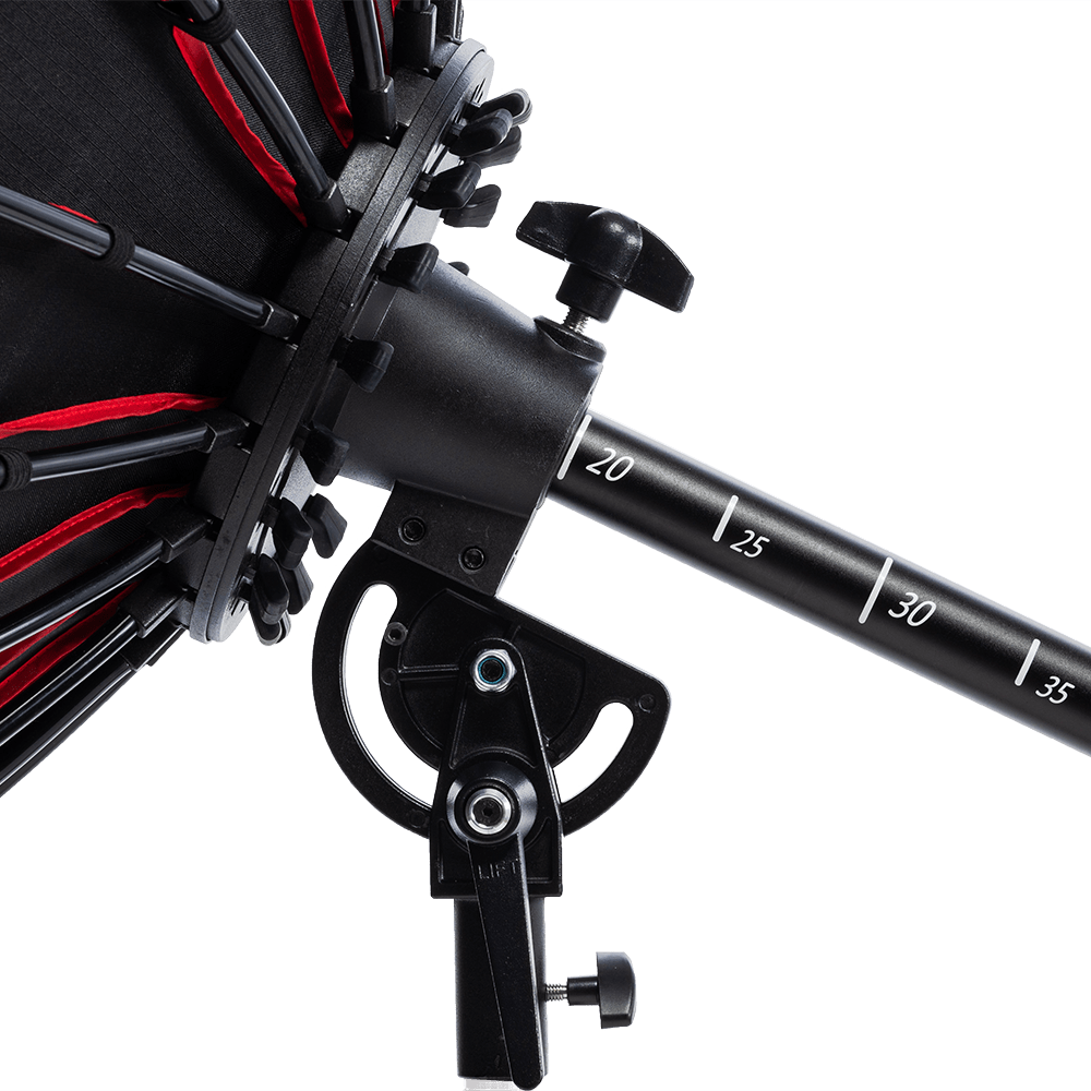 Zastosowanie pręta ogniskującego, którym możemy ustawiać kąt padania światła we wnętrzu softboxa pozwala na bardzo szybką zmianę jego rodzaju od kontrastowego po miękkie. Pozwala to również na bardzo precyzyjną kontrolę nad światłem zarówno błyskowym jak i stałym.