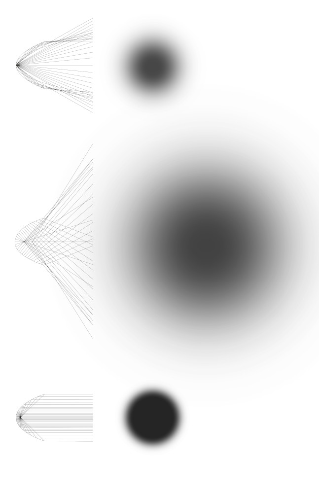 Paraboliczny kształt modyfikatora pozwala na uzyskanie charakterystycznego światła – miękkie i płynne przejścia tonalne wraz z pięknym kontrastem i łatwością w ustawieniu skupienia. Przedstawiona na wykresie krzywa reprezentuje reflektor, oś symetrii - to pręt ogniskujący na którym znajduje się lampa.