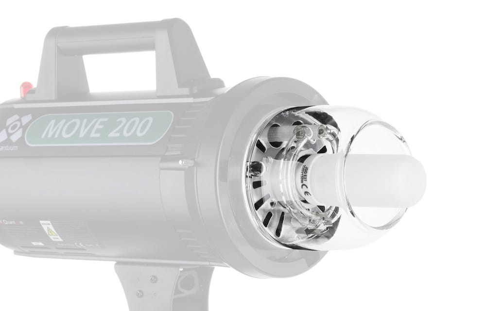 Szklana osłonka na palnik do nowszej wersji lamp Quadralite Move/Pulse/Move Pro/Pulse Pro z otworem na podłużną żarówkę modelującą mocowaną do lampy na gwint E27.