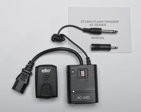 Odbiornik AC-04D wpinany jest w przewód zasialający lampę błyskową (stanowi on przejściówkę dla zasilania lampy) i podłączany do gniazda synchronizacyjnego w lampie. Odbiornik posiada przewód wyzwalający zakończony monofonicznym wtykiem JACK 6,3 mm. W komplecie znajduje sie przejściówka na wtyk JACK 3,5 mm.