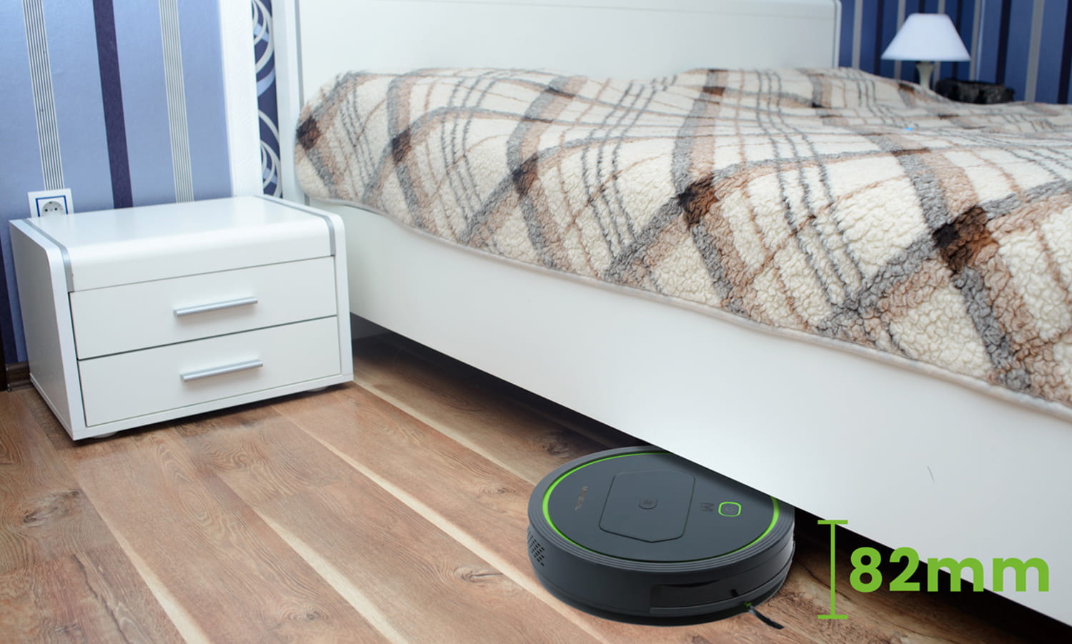 Robot automatyczny MBOT500 doskonale zbiera zanieczyszczenia spod łóżka i innych mebli. Ma zaledwie 8,2 cm wysokości – bez problemu dociera do trudno dostępnych miejsc w mieszkaniu. Przy produkcji użyto wysokiej jakości materiałów, dzięki czemu ma wytrzymałą obudowę, odporną na uszkodzenia.