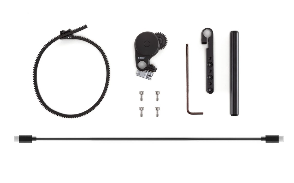 Silnik ostrości DJI Focus Motor jest sterowany za pomocą przedniego pokrętła gimabli DJI RS 2 i RSC 2. Pozwala na kontrolowanie ostrości, przysłony oraz zoom'u. Jest też kompatybilny z opcjonalnym pokrętłem ostrości DJI Focus Wheel mocowanym na gimbalu w celu uzyskania dwukanałowego systemu fokusa.