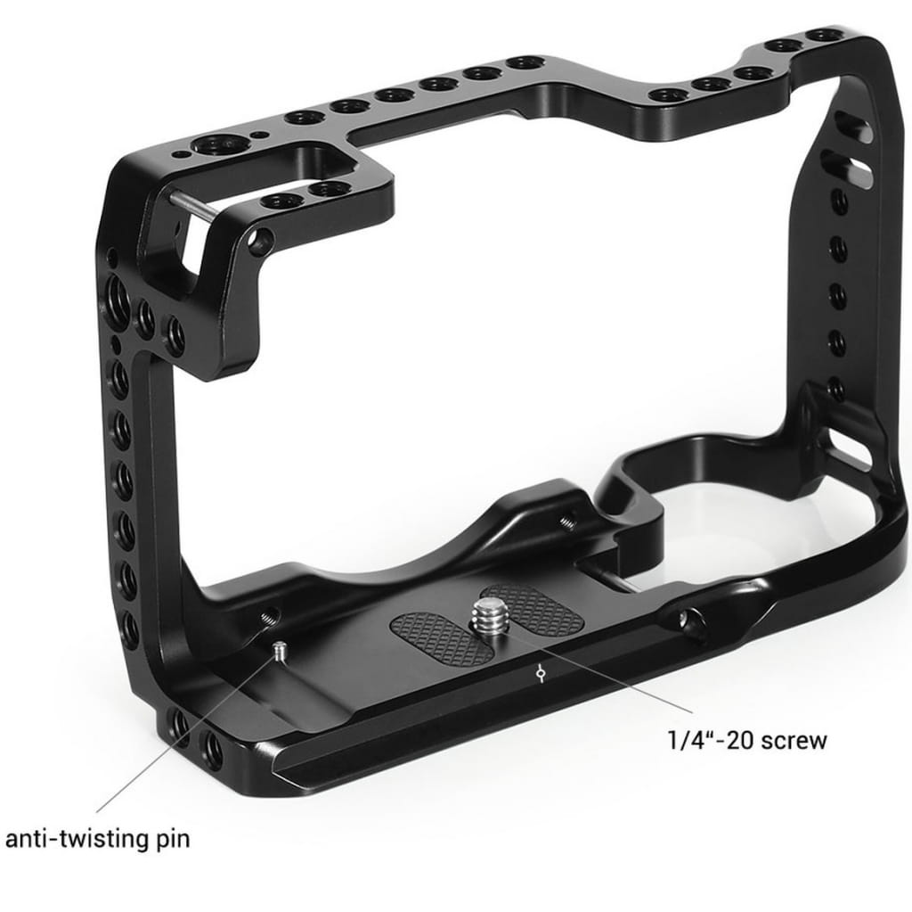 Klatka oferuje otwory gwintowane 1/4'' i 3/8'', a także mocowanie ARRI. Umożliwiają one łatwe łączenie klatki z różnymi akcesoriami montażowym, które pozwalają na rozbudowę zestawu operatorskiego. Klatka posiada także mocowanie dla pasków naramiennych czy na nadgarstek.