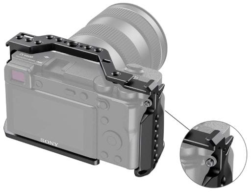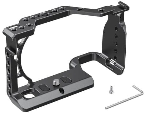 Klatka ochronna cechująca się bardzo niską wagą dedykowana do aparatu Sony A6600. Klatka posiada dwa oczka na pasek. W jej korpus zostały również zintegrowane dwie zimne stopki.