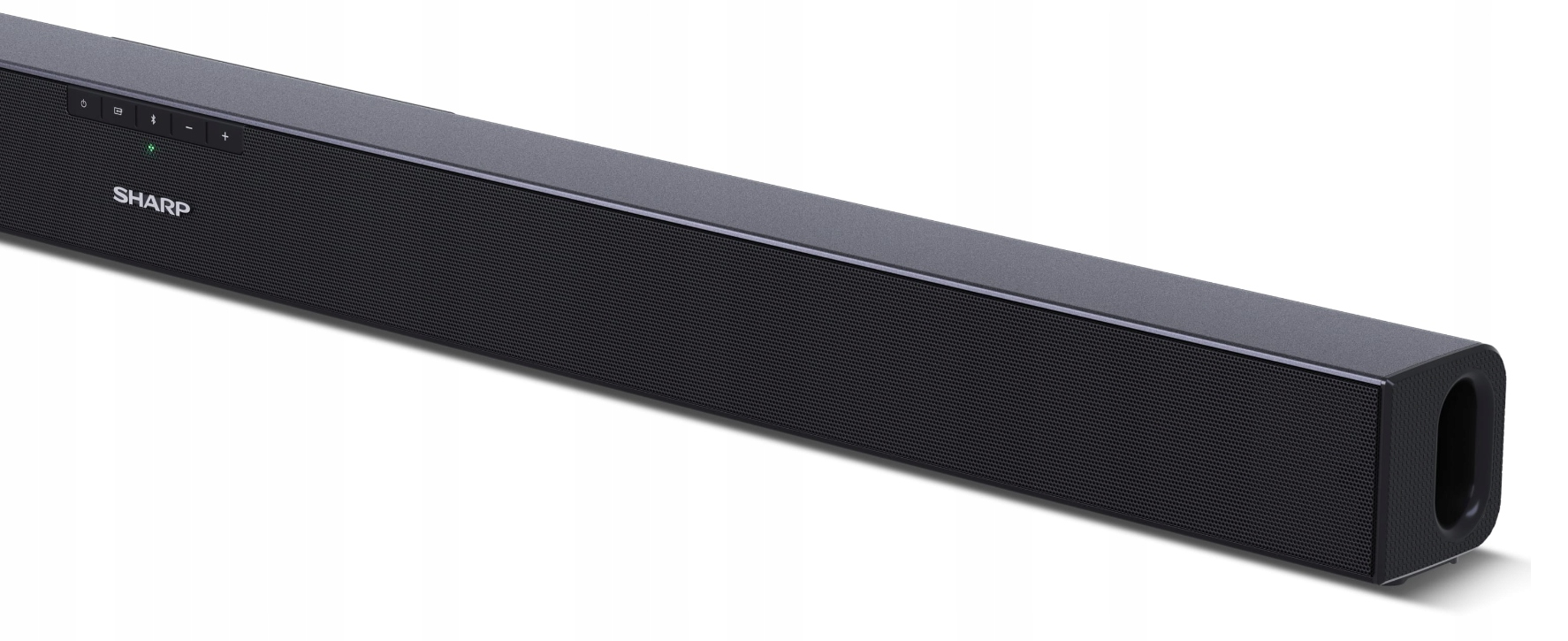 Metalowy grill soundbara z matowym wykończeniem będzie wyglądał estetycznie w każdym pomieszczeniu. Bez wątpienia soundbar Sharp sprawdzi się w zarówno w większych, jak i mniejszych pokojach