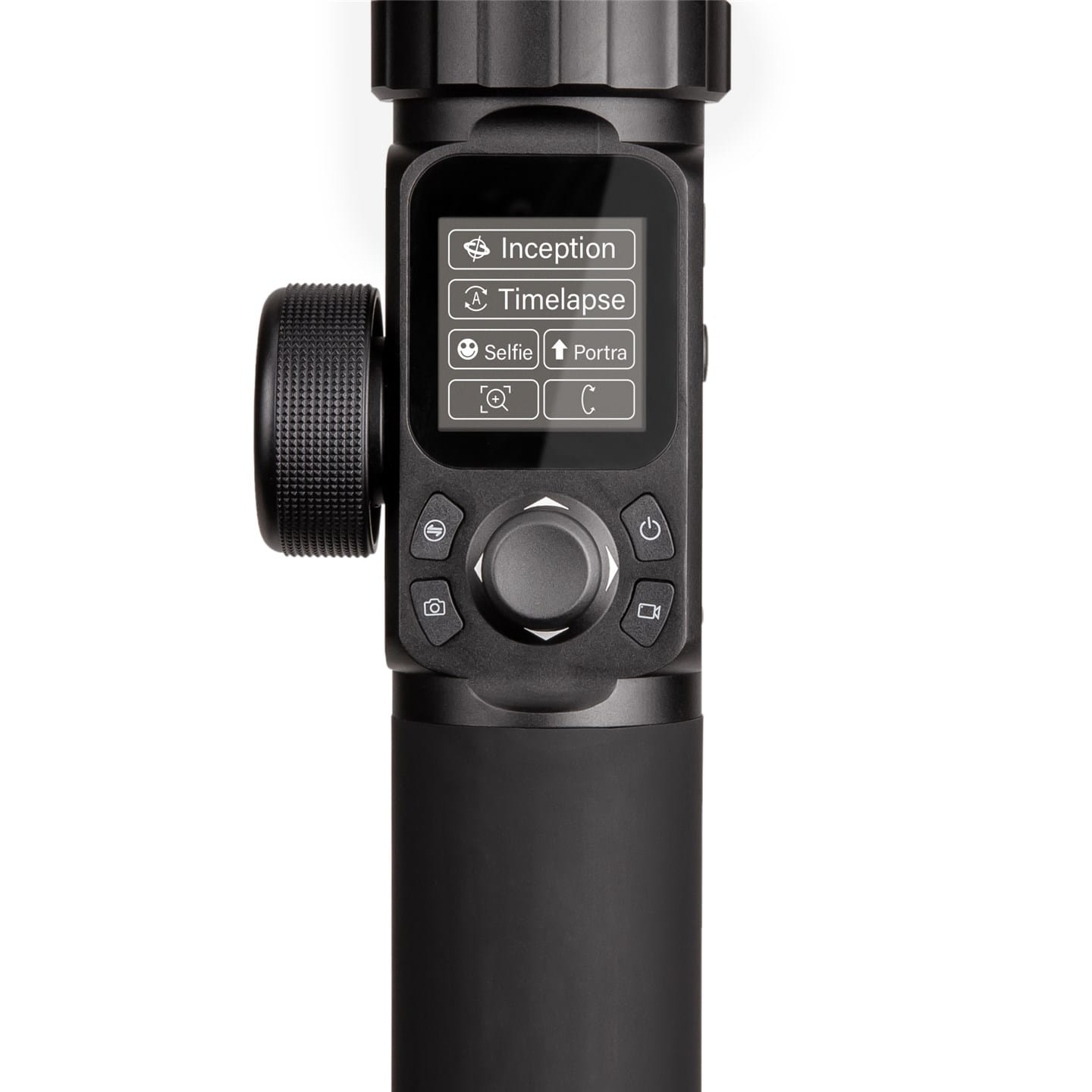 | Cechy produktu | Łatwa kontrola: dotykowy wyświetlacz lub aplikacja mobilna Niezależne blokady ruchu dla każdej osi Szybkie mocowanie aparatu Różne tryby pracy: selfie, incepcja, portret, time-lapse W komplecie także ładowarka i akumulatory |