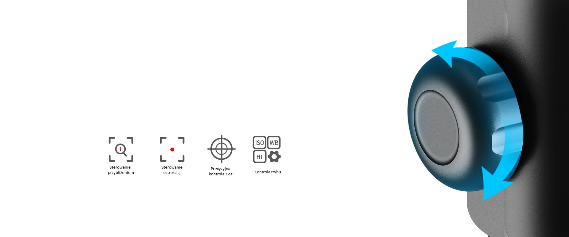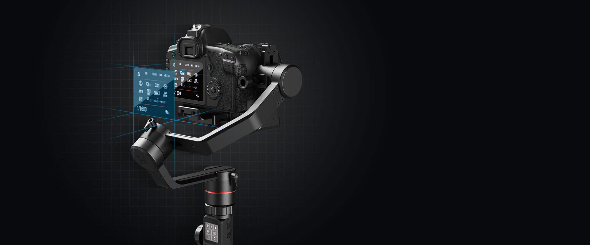 Sterowanie urządzeniem jest proste i intuicyjne. Przełączanie pomiędzy trybami pracy oraz funkcjami stabilizatora odbywa się za pomocą przycisków funkcyjnych. Ich ergonomiczne rozmieszczenie na uchwycie gimbala pod palcem wskazującym i kciukiem zapewnia szybki dostęp w każdym momencie. Precyzyjną kontrolę nad ruchami gimabala umożliwia natomiast czterokierunkowy joystick oraz nowatorskie pokrętło wielofunkcyjne. Po połączeniu gimbala z aparatem za pomocą pokrętła sterować można zoomem, oraz parametrami pracy aparatu, a dzięki dodatkowym przyciskom wykonywać zdjęcia oraz rozpoczynać/kończyć nagrywanie filmu z poziomu stabilizatora.