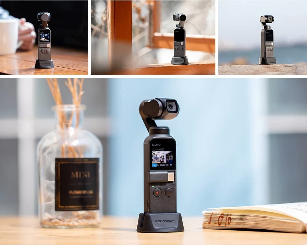 Specjalna podstawka dla DJI Osmo Pocket Stand marki PGYTECH został wykonany z żelu sylikonowego, który zapewnił dużą elastyczność, wytrzymałość i stabilność. W podstawce pozostawiono miejsce na mikrofon nie blokuje dostępu dźwięku do mikrofonu. Małe wymiary doskonale sprawdzą się w każdym miejscu gdzie będziemy kręcić materiał wideo bez konieczności trzymania kamery w dłoni.