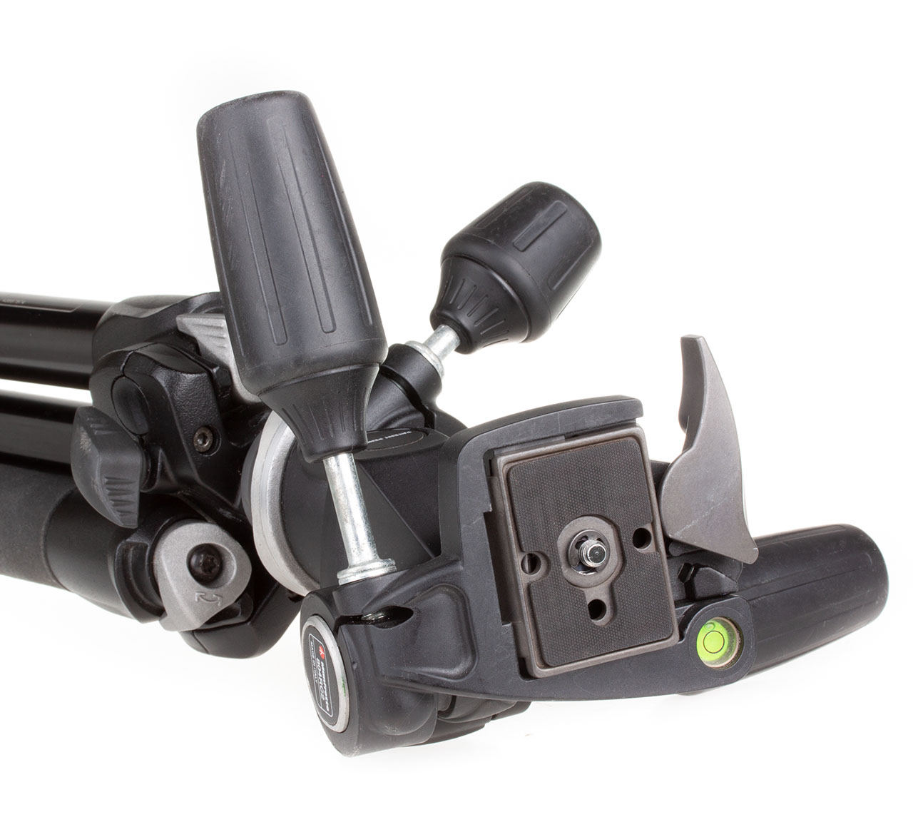 3-kierunkowa głowica statywowa od Manfrotto wyposażona została w innowacyjny system zsuwanych dźwigni wraz z ergonomicznymi, gumowymi uchwytami, co czyni ją wyjątkowo kompaktową. Posiada też specjalną sprężynę balansującą, której zadaniem jest odpowiednia regulacja przechyłu przedniego aparatu w przypadku montażu body z cięższym lub długim obiektywem.