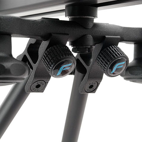 Podpory instaluje się na przeciwległych nogach statywu za pomocą regulowanych uchwytów. Po drugiej stronie mocujemy je do nóg slidera za pomocą zacisków typu „klik”. Na środku podpór znajdują się pokrętła zaciskowe, które umożliwiają błyskawiczną regulację długości, pozwalając na ustawianie slidera pod różnym kątem.