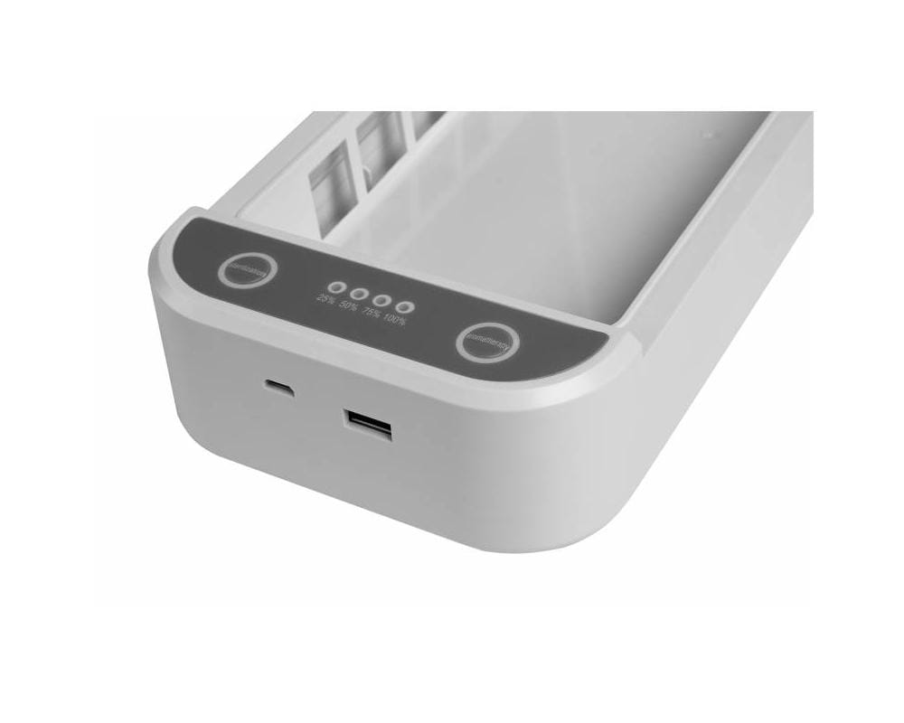 Dodatkowy port USB pozwala podłączyć do sterylizatora dodatkowe urządzenie, np. smartfona w celu doładowania baterii w trakcie trwania procesu dezynfekcji innych przedmiotów.