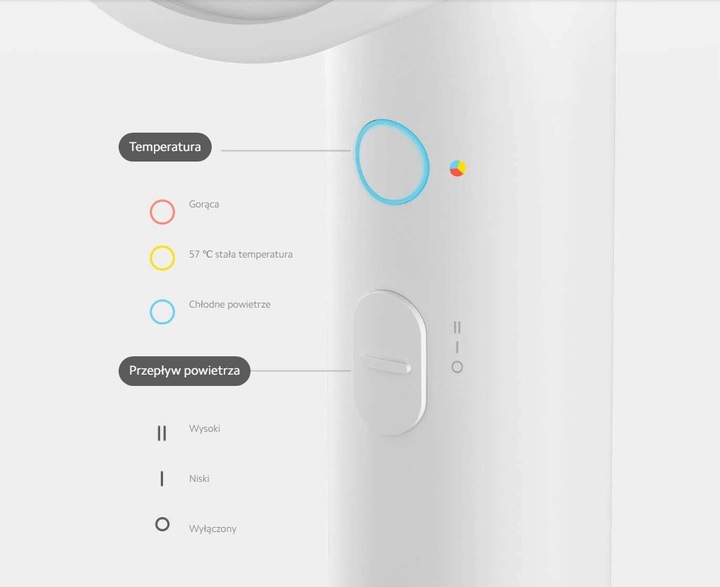 Kompaktowa, lekka i szybka suszarka 9,5 cm ultrakrótka obudowa20 m/s ultrawysoki przepływ powietrza 50 milionów jonów ujemnych 57°C inteligentna kontrola temperatury |