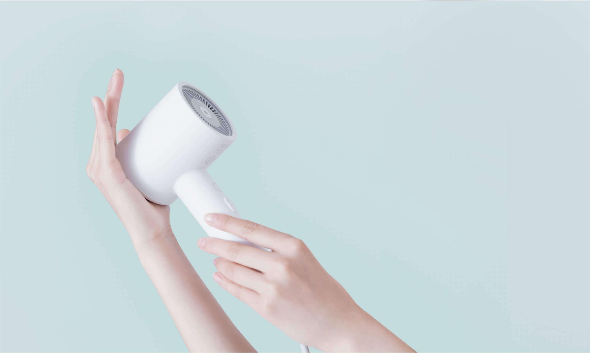 Super cicha i lekka suszarka do włosów Mi Ionic Hair Dryer H300 o dużej mocy 1600W. Rzut powietrza już na odległość 9.5 cm, inteligentna kontrola temperatury, ergonomiczna rączka i uchwyt.