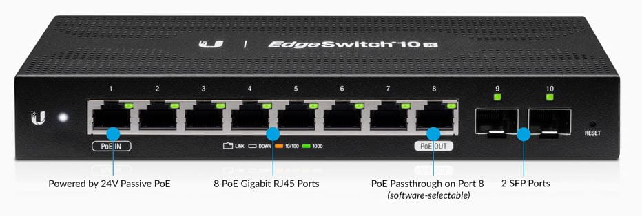 EdgeSwitch 10X jest naszym najtańszym zarządzanym przełącznikiem z portami SFP.