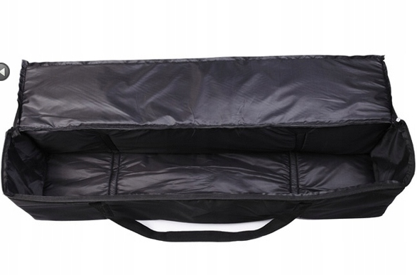 Torba jest bardzo pojemna. Idealnie pomieści kilka dużych statywów studyjnych (5-7szt.), parasolki, żarówki, softboxy, lampy błyskowe, oprawki studyjne, poprzeczki do zawieszenia teł, a nawet tła fotograficzne o szerokości do 105 cm.