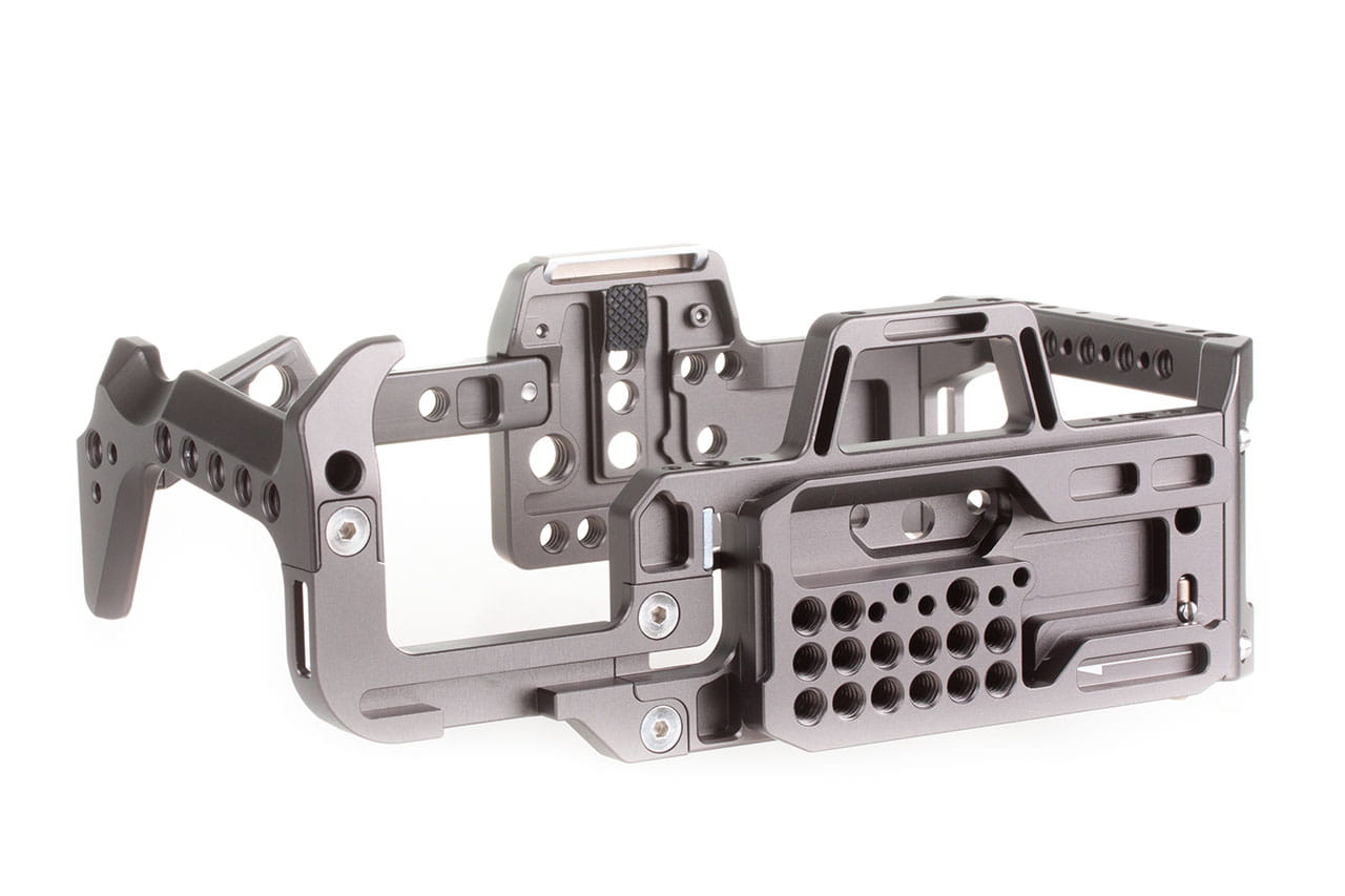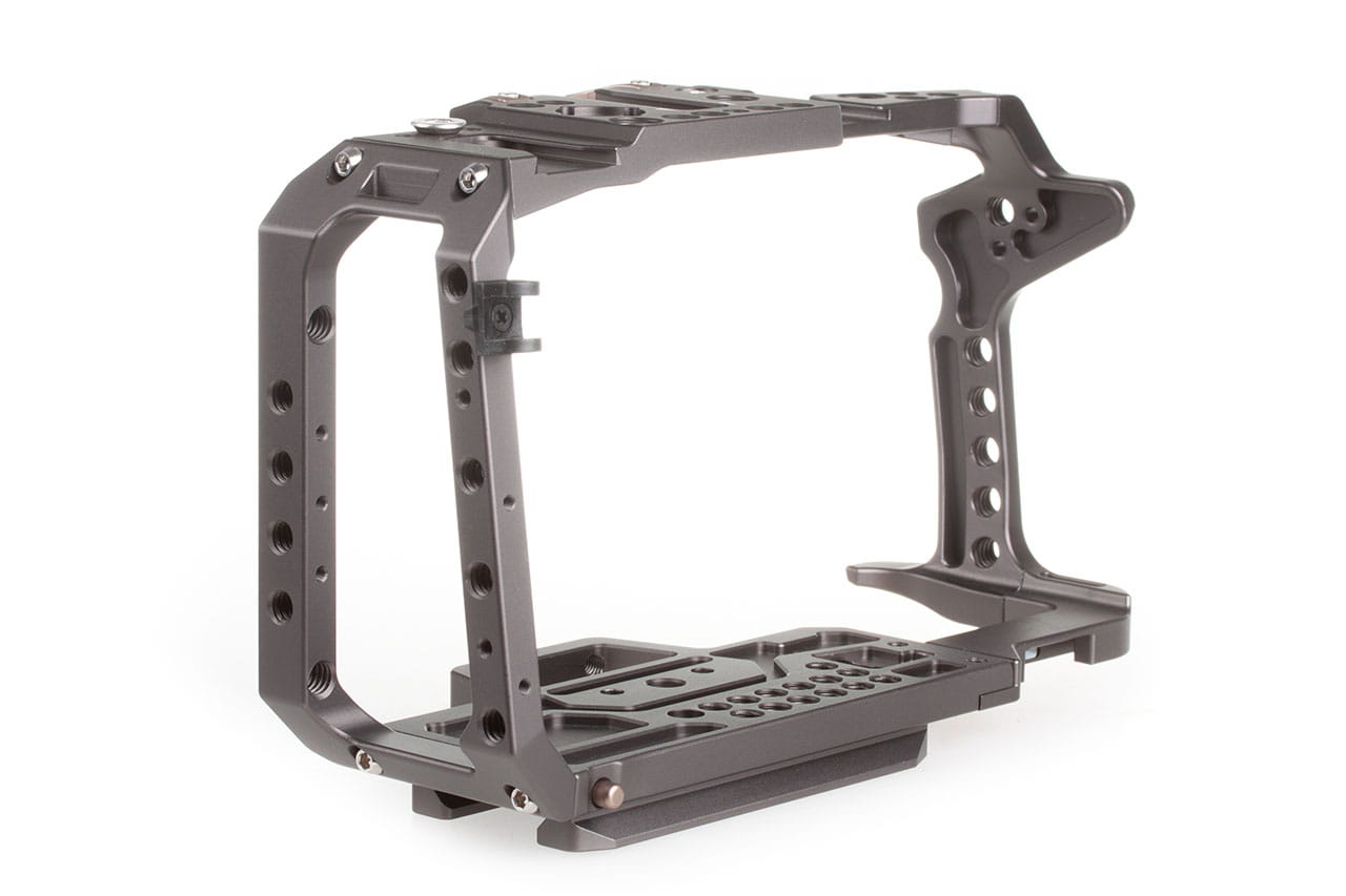 Szybko zwalniany górny uchwyt i różne opcjonalne boczne uchwyty można przymocować do klatki, aby zapewnić różne sposoby wygodnej obsługi ustawień aparatu.