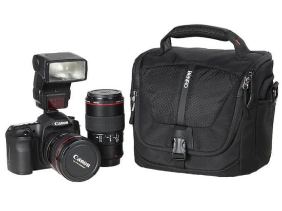 Torba z łatwością pomieści lustrzankę cyfrową wraz z dwoma obiektywami i lampę błyskową.