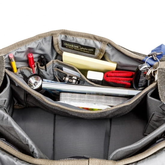 | Torby Retrospective 10, 20 i 30 mają wewnętrzny organizer wewnątrz głównej przegrody z wystarczającą ilością miejsca na niezbędne przy fotografowaniu drobiazgi. | |