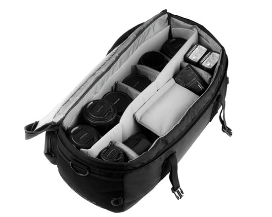 - pomieści 2-3 korpusy, nawet 12 obiektywów, kilka lamp błyskowych i szereg innych akcesoriów,
