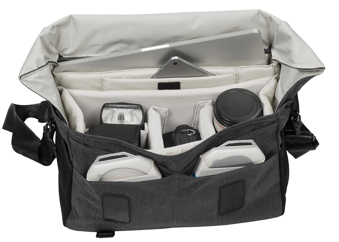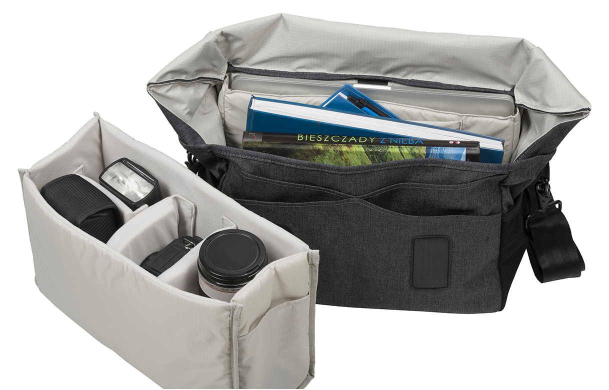 wsiąkając. Na wyjątkowo ekstremalne warunki dostępny jest opcjonalny, dedykowany pokrowiec. Klamry klapy zamykane są na neodymowe magnesy, w przeciwieństwie do starszych rozwiązań pozwala to na szybki i wygodny dostęp do torby. Torby dedykowane są pod sprzęt fotograficzny, jednak można je swobodnie skonfigurować do codziennego użytku. Dzięki nowoczesnemu wzornictwu po wyciągnięciu wewnętrznej, usztywnianej