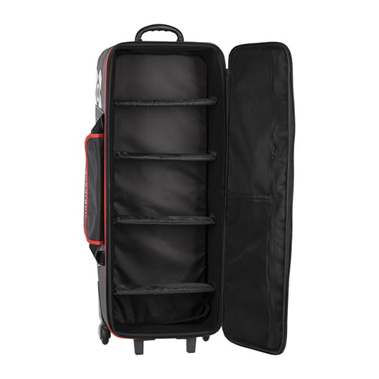 - torba posiada dwa kółka do łatwego transportu sprzętu oraz dwie nóżki, na których można stabilnie postawić torbę w pozycji pionowej,