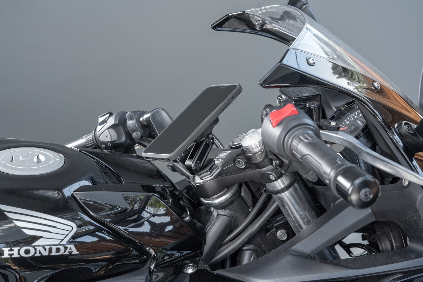 - Bezpieczne i silne mocowanie telefonu do motocykli sportowych i ulicznych z kierownicą typu clip-on
