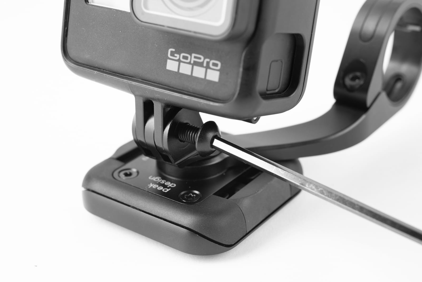 | Zestaw zawiera | 1x Uchwyt rowerowy Bike Mount Out Front 1x Mocowanie akcesoriów typu GoPro + śruba 3x Kołnierze dopasowujące: 22.2mm (7/8"), 25.4mm (1”), 31.8mm (1-1/4") 1x Śruba radełkowa (dla funkcji flip-to-film) 1x Klucz imbusowy |