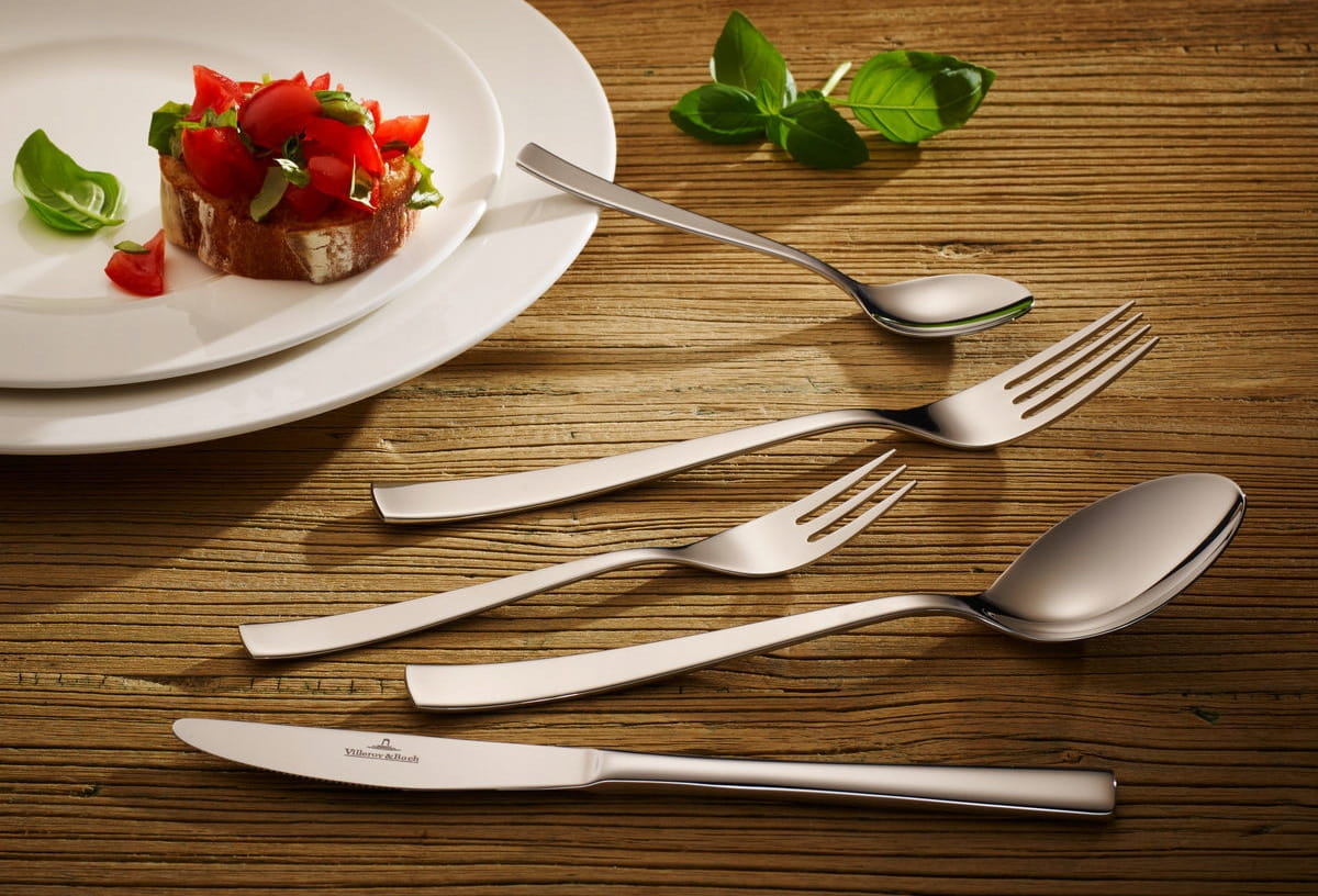 Sztućce Villeroy & Boch wykonane są ze stali nierdzewnej 18/10. Oznacza to 18% chromu i 10% niklu. Te kompozycje są bardziej odporne na korozję niż inne stopy i można je myć w zmywarce.