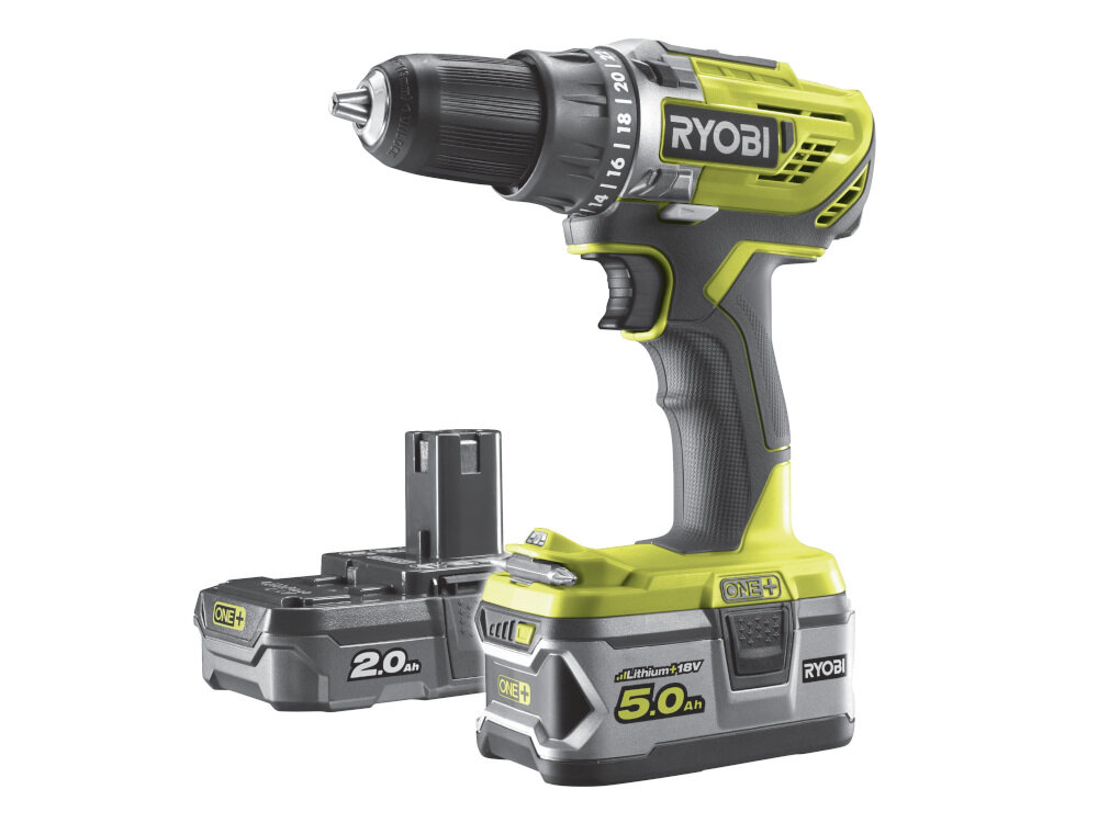 W zestawie z wiertarko-wkrętarką RYOBI R18DD3-252S 18V znajdują się dwa akumulatory o pojemności 2,0 Ah i 5 Ah, które zapewnią Ci ciągłość pracy.