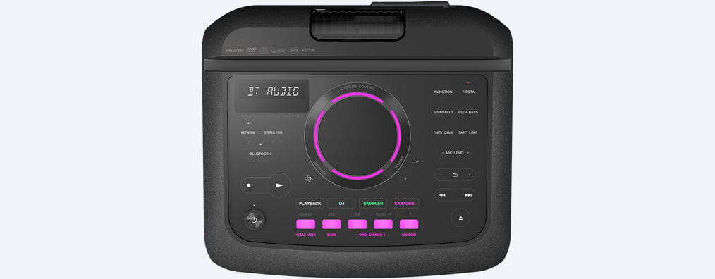 | Cechy produktu | Zaawansowany dźwięk z systemu zamkniętego w jednej obudowie Podświetlenie diodami LED i efekty DJ z aplikacją SongPal Panel sterowania odporny na zachlapanie i kurz |